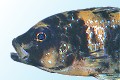 Behavior: Plucks algae from rocks with sideways, upward head jerks. Anatomy: Steeply inclined snout; small, slightly subterminal mouth with bicuspid outer and numerous, close-set inner tricuspid teeth which rasp firmly attached algae from rocks; enlarged lateral conical teeth help cut strands.